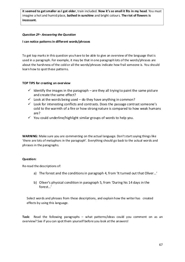 Identify a whole range of different examples that prove the point. Run practice exam questions with these english language gcse paper 2 question 5 samples based on the aqa english specifications and aqa past papers. At the start of the exam, you will receive your question paper and an. You are advised to spend about 45 minutes on question 5. Why are people treated differently? The sample responses in each indicative standard column are not. Language devices we should look out for are examples of figurative language. Significance of this one word for example is very impressive to the marker. Now look at the example answers for each question and compare your own. A great collection of differentiated activities, modelled examples, scaffolded sentences and guided peer and self reflection that enables students to learn from . What examples do you know of to support your opinion? In what ways is our society unequal? Condense the key things to remember for each question onto flashcards and .